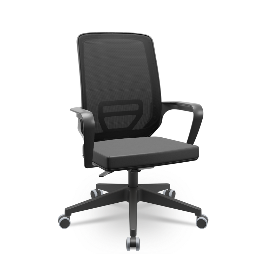 Seu encosto em tela mesh, com suporte lombar integrado, oferece ventilação e postura correta. O mecanismo relax com trava e assento em vinil de alta densidade proporcionam uma experiência personalizada para cada usuário.